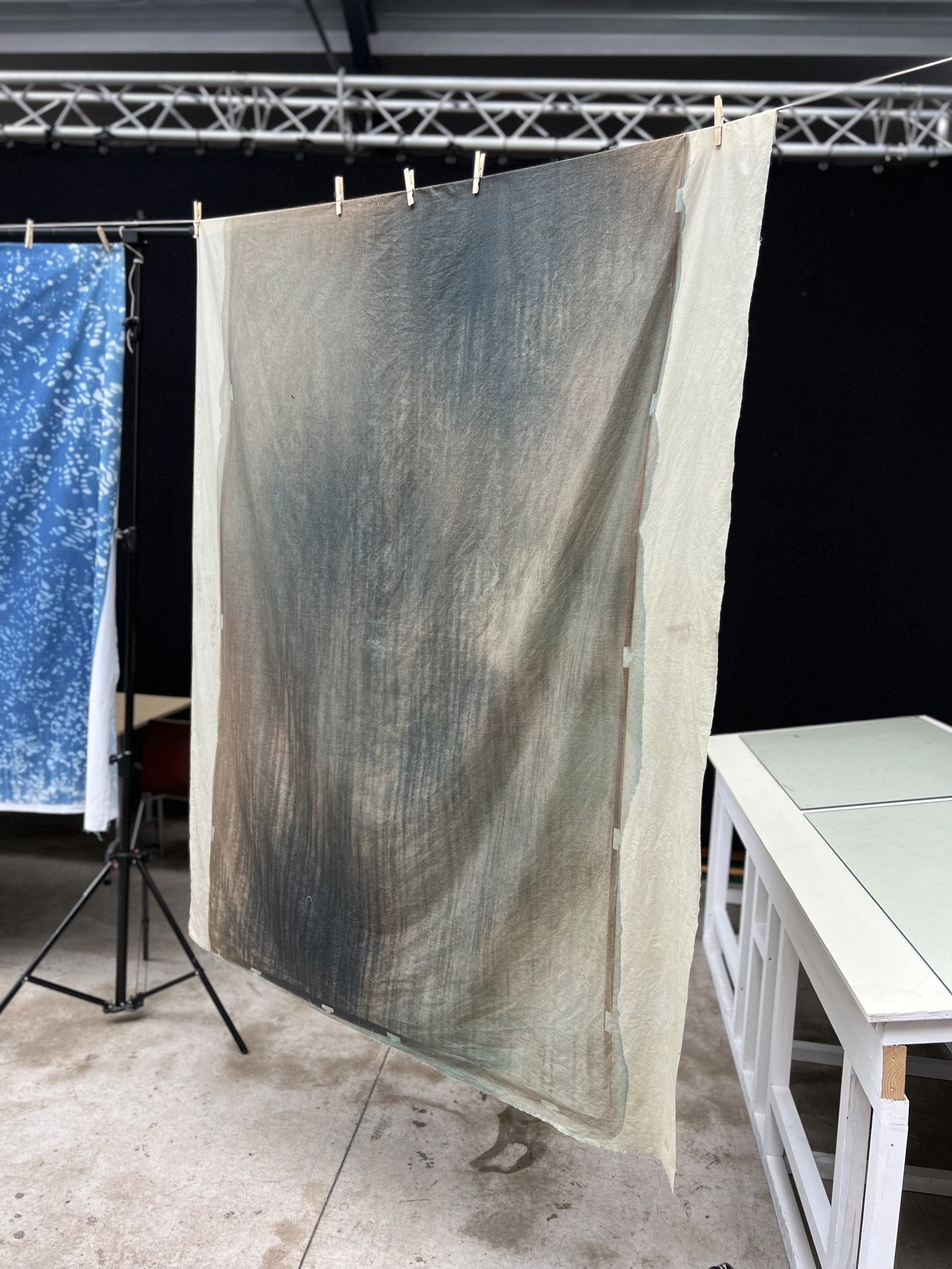 Le dimanche 6 août entre 14h00 et 18h00, Dorothée Wycart et Olivier Guyaux proposent une expérimentation plastique entre symbolisme et alchimie photographique : Triptyque Ishtar, une fresque en cyanotype et carbone de 50 m².